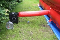 Unsere Hüpfburg ist mit einem Dauergebläse ausgestattet. Die überschüssige Luft kann durch Nähte und Reißverschlüsse entweichen. Dadurch werden Schäden und Verletzungen durch zu pralles Aufblasen vermieden.