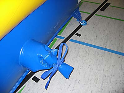 Seitliche Luftschläuche (siehe Foto) sind bei Betrieb zugebunden und werden nach Betrieb zum Auslassen der Luft wieder aufgeknüpft.
