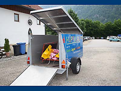 Im abschließbaren Kastenanhänger (zul.Gesamtgewicht: 750 kg)