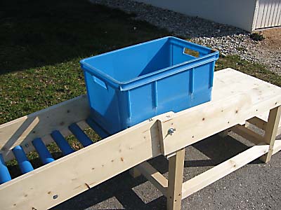 Toll ist das neue System, das unser Mitarbeiter Ludwig Hogger konstruiert hat: Ohne Werkzeug ist die Rollenbahn von einer Person in maximal 15 Minuten aufgestellt!